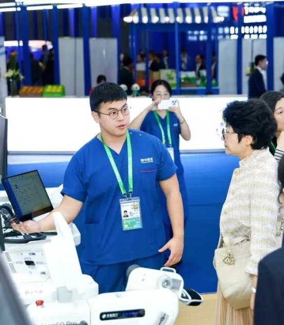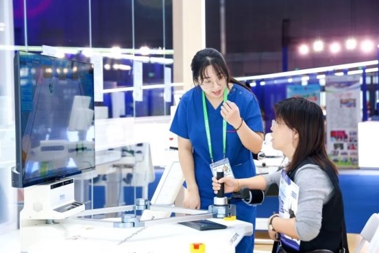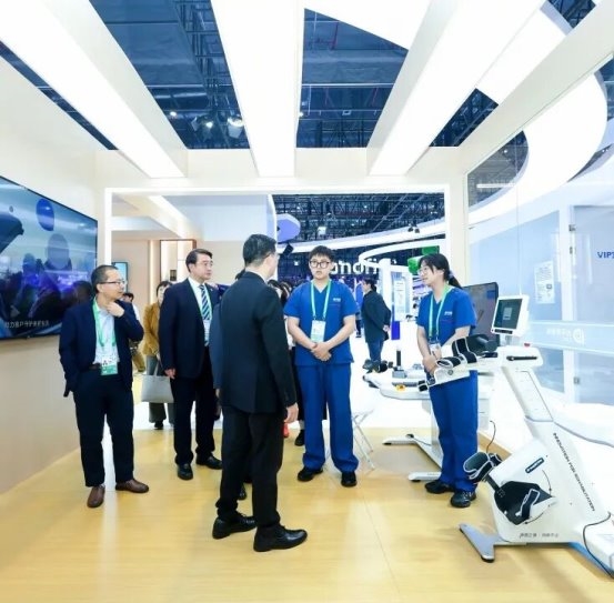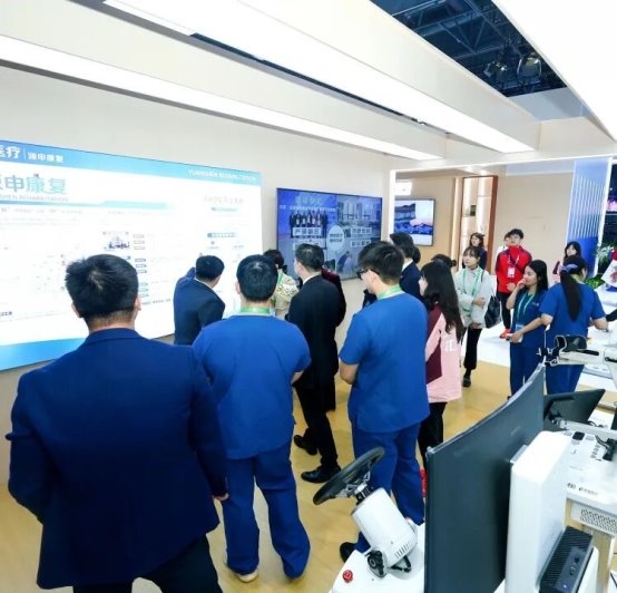 (中国太保进博展厅-太医展区的丰富康复设备体验,吸引众多嘉宾驻足参观体验)